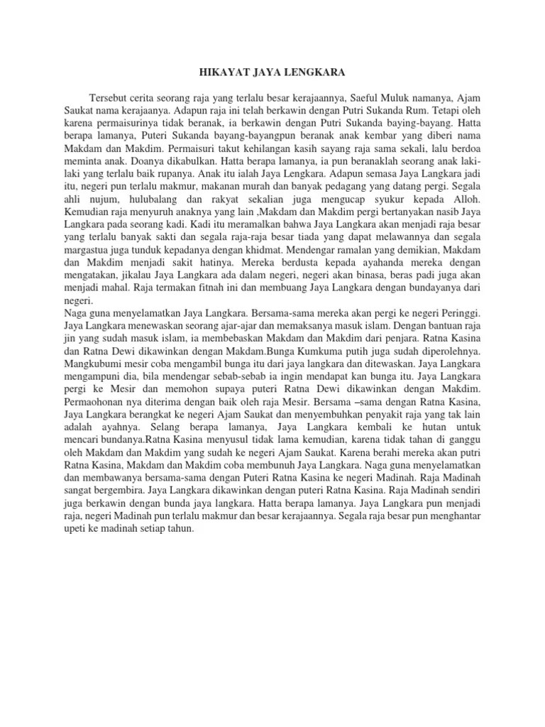 hikayat memiliki banyak nilai kehidupan. Encontre diversos livros em inglês e outras línguas com ótimos preços. hikayat jaya lengkara tersebut cerita seorang raja yang terlalu besar kerajaannya, saeful muluk namanya, ajam saukat nama kerajaanya. Adapun raja ini telah berkawin dengan putri sukanda rum. Hatta berapa lama, bayangan putri sukanda melahirkan anak kembar bernama makdam dan makdim.